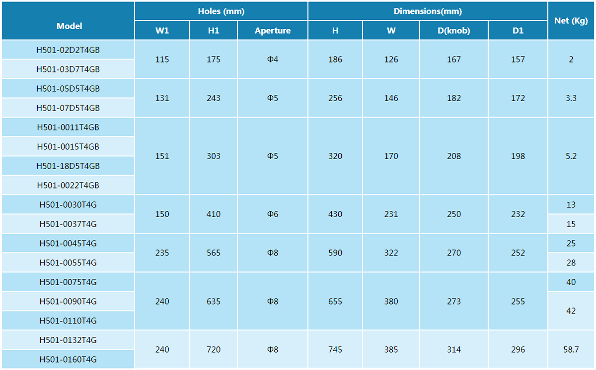 H501 series is a high performance synchronous vector inverter developed by our company. It adopts high performance vector control technology, low speed and high torque output, with good dynamic characteristics, super overload capacity, rich powerful functions and stable performance. Supports RS485, PROFIBUS-DP, CANlink, and CANopen fieldbuses.