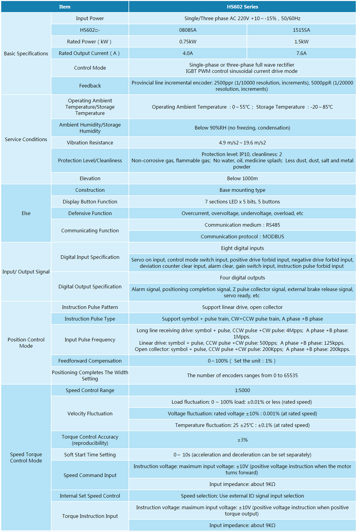 HS602 series high-performance dual-axis AC servo drive is a dual-axis AC servo drive product developed by our company. It supports multi-axis coordinated control, which goes beyond the thinking mode of single machine. It is equivalent to integrating two servos in the same drive, which improves the utilization rate of power and saves energy. Two axis synchronous control, data exchange between axes completely without time delay, motion control function flexible expansion, to meet the user's convenience needs.
